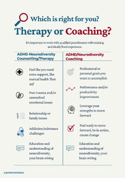 Coaching is a special professional partnership. It thrives on safety, respect, trust, openness, goodwill, honesty, and creativity to propel you forward.ADHD & Neurodiversity coaches help you become an expert in your unique brain wiring and behaviour. In the context...